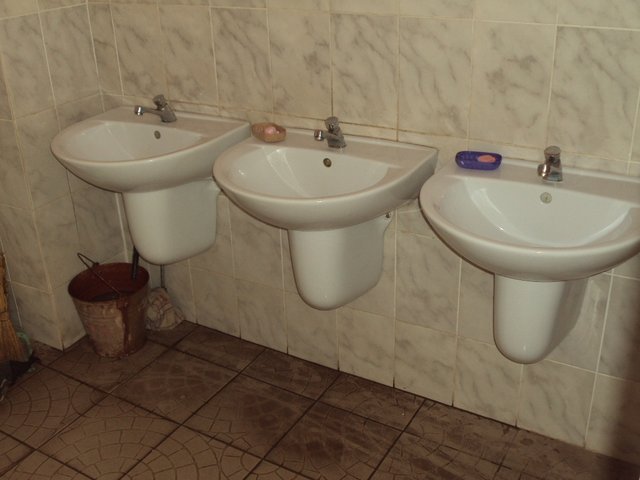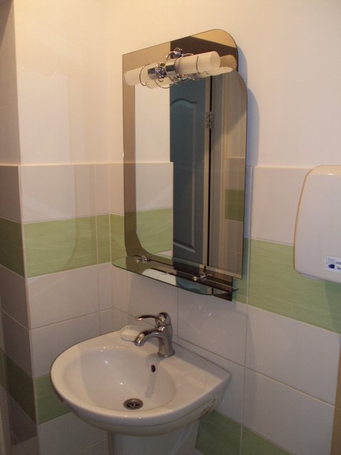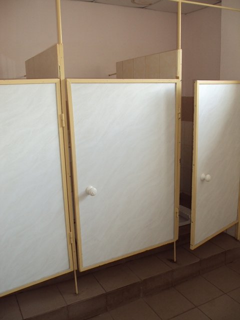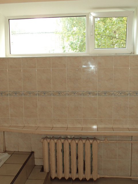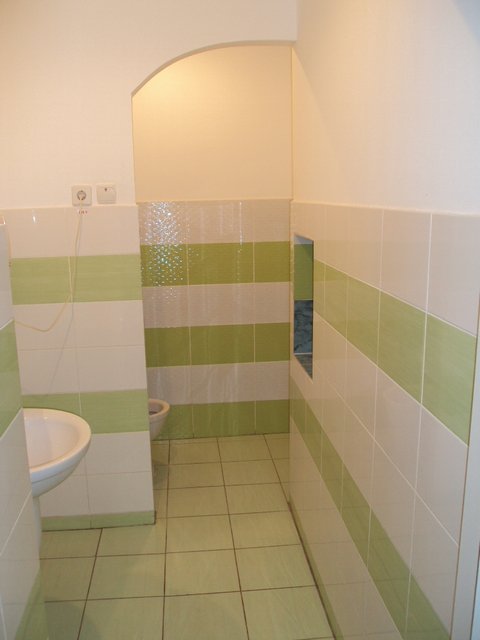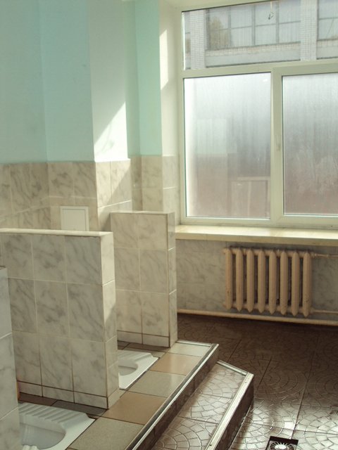 В лицее №15 восемь туалетов. Все они тщательно отремонтированы, сантехника в них также новая. В некоторых уборных есть зеркала. Особенно меня удивил туалет, оформленный в салатово-белых тонах. Честно говоря, если бы я не знал, что это школьная уборная, то наверняка бы подумал, что это туалет какого-нибудь кафе или ресторана.
