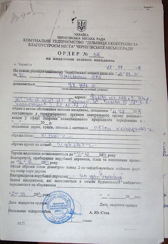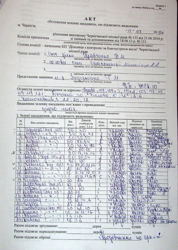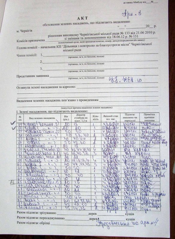 В целом, по результатам обследования территории ЖЭКа был составлен акт, в который вошли 115 деревьев. Согласно акту и выписанного ордера, часть деревьев подлежит сносу, а часть – обрезке. Работы по уборке зеленых насаждений проводят КП «Участок по контролю за благоустройством Чернигова», фирма «Вертикаль».