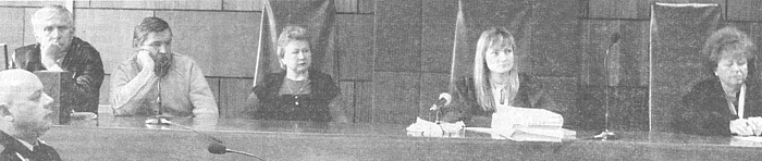 Зліва направо: присяжні Віктор Овдак, Анатолій Пенський і Марія Ященко, судді Олена Бузунко та Марія Бригинець