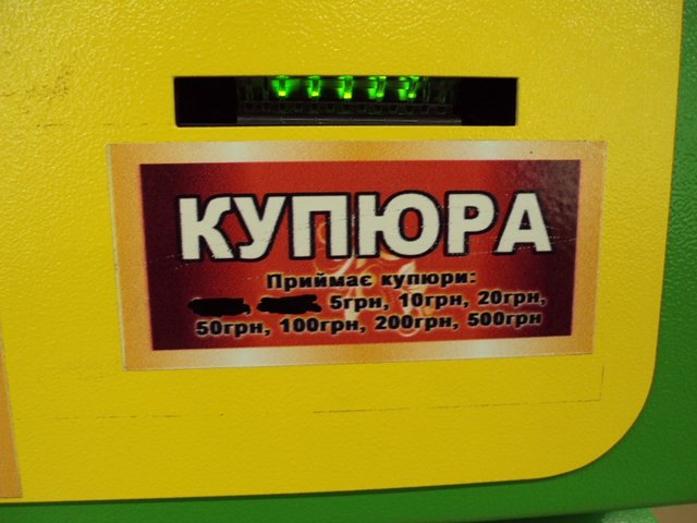 В электронном боксе есть купюроприемник, способный принимать купюры номиналом 5, 10, 20, 50, 100, 200 и 500 гривен, отверстие для чеков и специальный карман для выдачи денег. Судя по тому, что автомат способен принимать купюры крупного номинала, владельцы данного бизнеса рассчитывают на солидную прибыль.