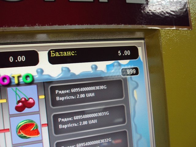 Я все же решил уточнить, как получить выигрыш в полном объеме и узнать, что это за игровые автоматы, поэтому позвонил по номеру указанному на игральном боксе. Трубку взял мужчина. Он пояснил, что автомат «заряжен» купюрами по 20 гривен, поэтому чтобы снять выигрыш мне нужно внести в автомате еще 15 гривен, а затем снять 20. На мой вопрос о легальности подобных игровых автоматов мужчина ответил, что все вполне легально. «Тогда почему игровые автоматы изъяла милиция?» – поинтересовался я. «Они изъяли их на экспертизу. Когда проведут экспертизу и установят тот факт, что это не игровой автомат все автоматы вернут на место» – подытожил мужчина. Также он заверил меня в том, что это все же государственная лотерея, представительство которой находится в Киеве.