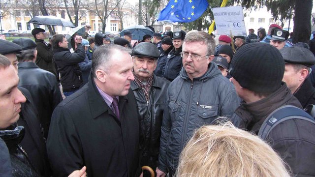 Прибывшие к месту событий депутаты гор- и облсовета от «Батькивщыны» пытались заявить, что исполнительная служба снесла приемную народного депутата. Но, похоже, это было не совсем так. По словам самих депутатов горсовета табличку с надписью «Приемная» кто-то снял еще утром.