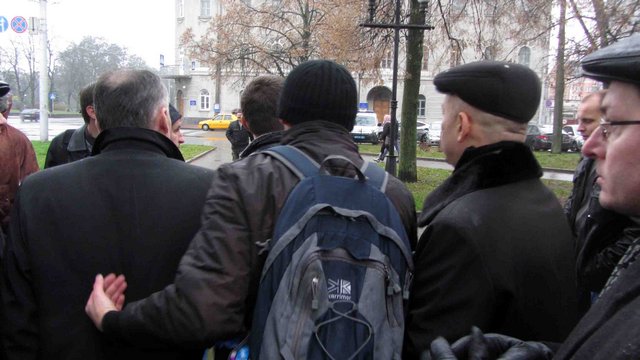 Прибыв на место проведения исполнения судебного решения, судебные исполнители несколько раз зачитали решение окружного административного суда и дали возможность его сфотографировать. Поскольку к "европлощадке" постоянно подходили все новые защитники, процесс оглашения судебного решения повторялся по мере необходимости.