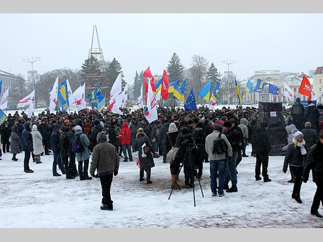 Выступающие на митинге народные депутаты рассказали присутствующим о том трагическом дне 30 ноября в Киеве, когда бойцы «Беркута», выполняя приказ правительства, жестоко расправились с мирными участниками Евромайдана. Они также напомнили главные требования Евромайдана и призвали всех не быть равнодушными, а приехать в Киев 8 декабря для участия в народном Вече.