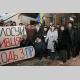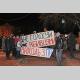 Выстроившись в колонну по четыре человека и разобрав плакаты, митингующие скандируя лозунги: «Выходи из регионов», «Не голосуй с убийцами», двинулись через сквер Попудренко к приемной депутата.