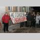 Конечно, депутат заранее просчитал ситуацию, и не собирался поджидать митингующих.  Общественная приемная оказалась закрытой. Это ничуть не смутило общественность. Они провели митинг под стенами приемной, а плакаты с требованиями приклеили скотчем на зашторенную дверь офиса.
