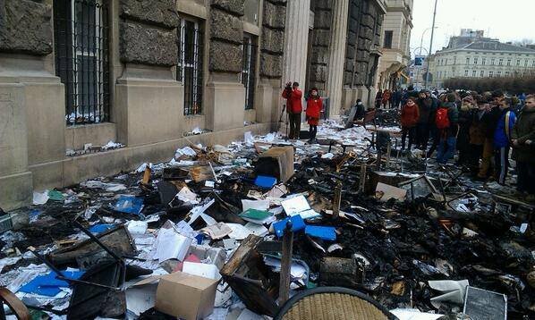 В областное управление милиции вышел полковник Сергей Бондарь и сообщил митингующим, что пока начальник МВД Александра Михайлика нет на месте.
