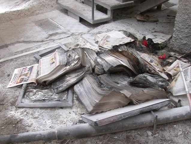 Сегодня 25 февраля снова произошло проникновение в областной офис коммунистов, что на Воровского, 20. Группа молодежи вынесла партийные документы и сожгла, повредили имущества. В это время в офисе находились люди, они и вызывали наряд милиции. Задержать удалось только одного из нападавших, сейчас он находится на Шевченко, 13, милиция пытается выяснить данные нападавших, ведется проверка. Открыто криминальное производство по статье 194-й – повреждение имущества.