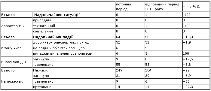 О 14 год. 15 хв. сталася пожежа сухої трави на відкритій території на площі 0,2 га. Причина - необережне поводження з вогнем невстановленої особи. Збитку не нанесено.