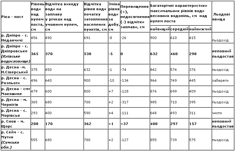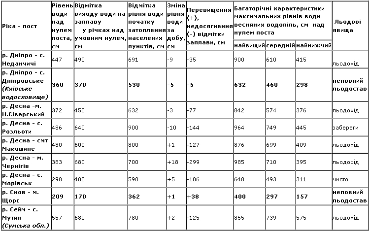 Моніторинг гідрологічної обстановки на річках області станом на 08 год. 00 хв. 09.03.2013 року: