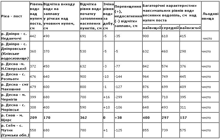 Моніторинг гідрологічної обстановки на річках області станом на 08 год. 00 хв. 10.03.2013 року:
