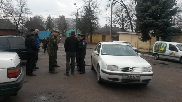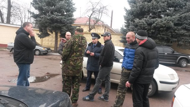 В это же время на автомобиле подъехал подполковник милиции, с которым тоже начали спорить активисты и объяснять ему, что КамАЗы хотят передать для поддержки украинской армии. Сам милиционер сказал активистам, что в милицию уже обратились представители фирмы КамАЗ.