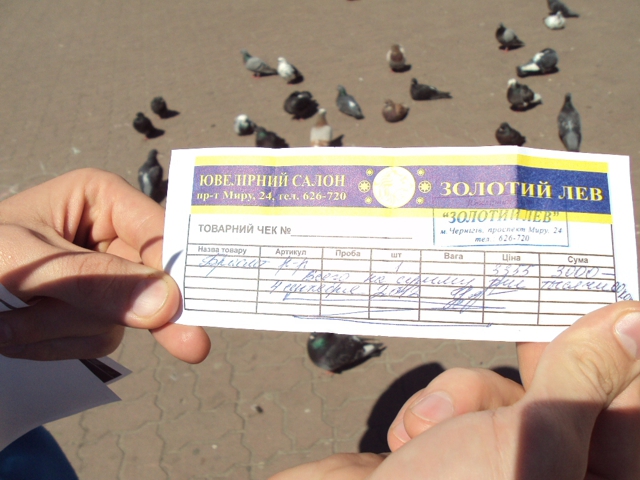 Один из сохранившихся у Григория чеков о покупке золотого браслета в магазине «Золотой лев»
