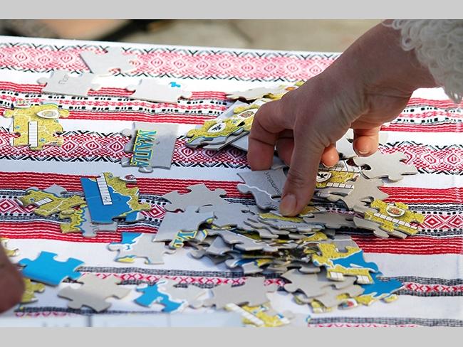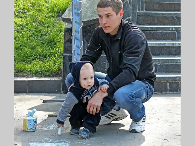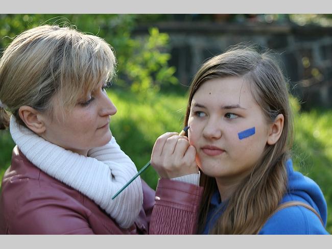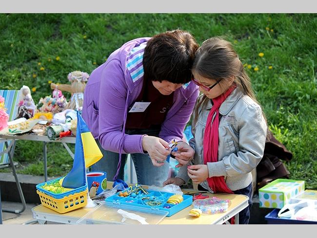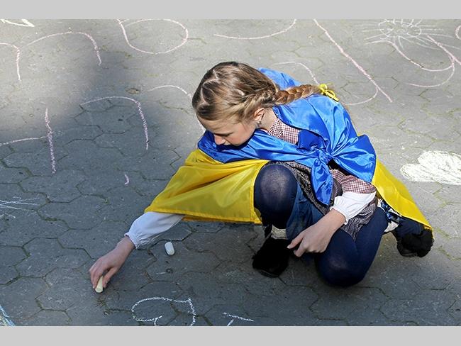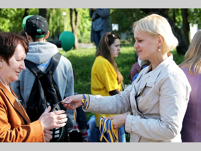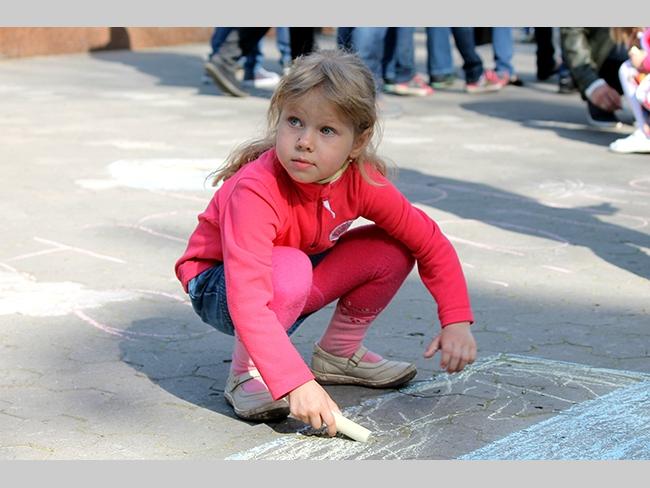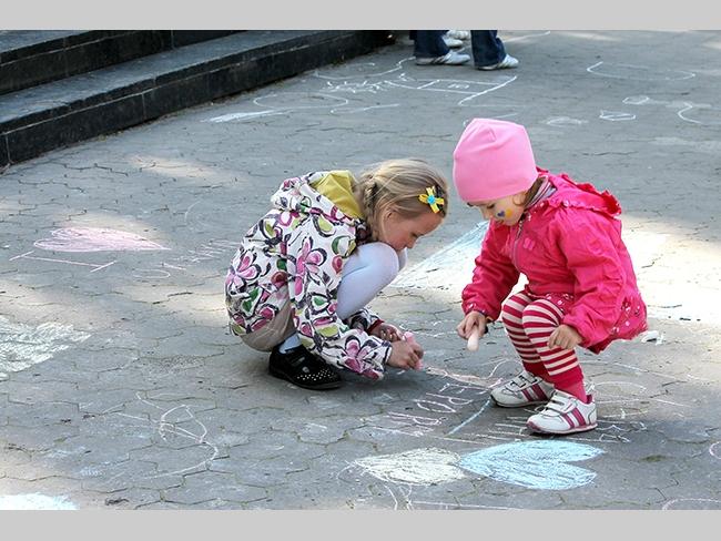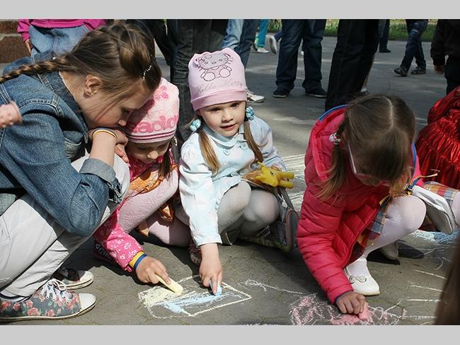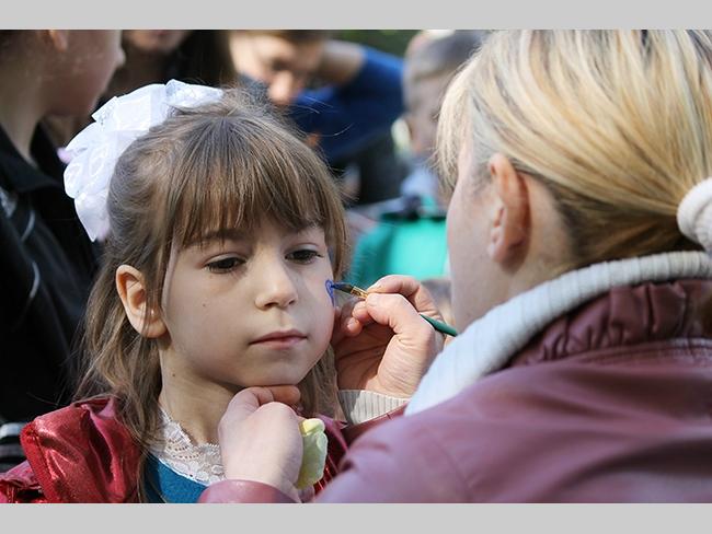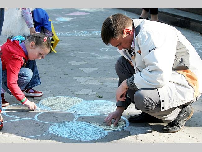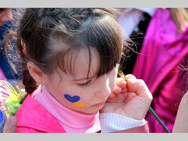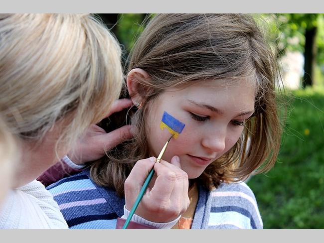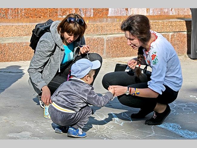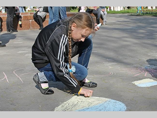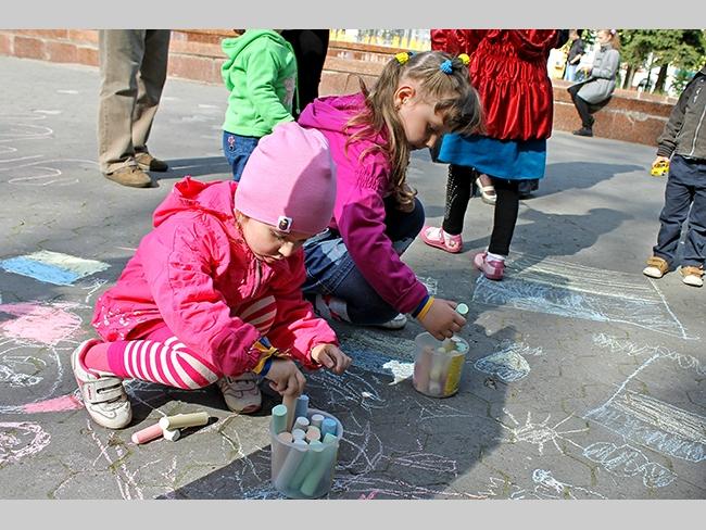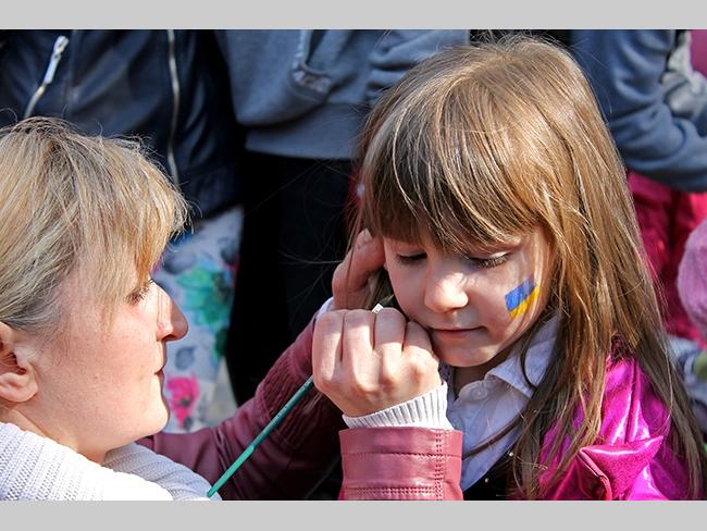 Дітлахи малювали на асфальті українські символи, складали пазли «Єдина Україна» та створювали прикраси в національних кольорах. Всім охочим, а їх булу чимало, малювали на обличчі «Жовто-блакитне серце». Дітлахам допомагали їх батьки, та так захопилися, що часом було важко визначити, кому більш подобається займатись творчістю.
