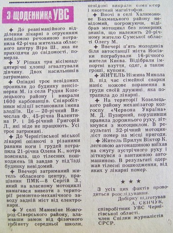 Но, чтобы не заканчивать обзор черниговской криминальной хроники за 1991-й год на грустной ноте, хочется закончить его курьезными ситуациями и случаями о которых не преминула упомянуть черниговская пресса.