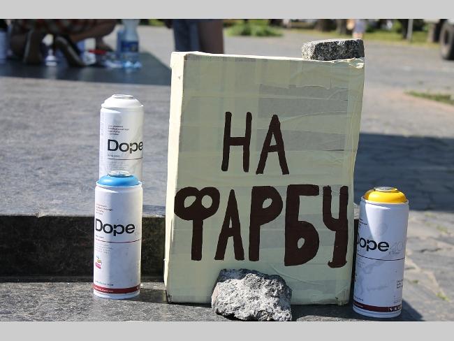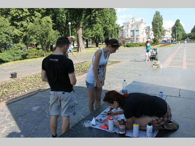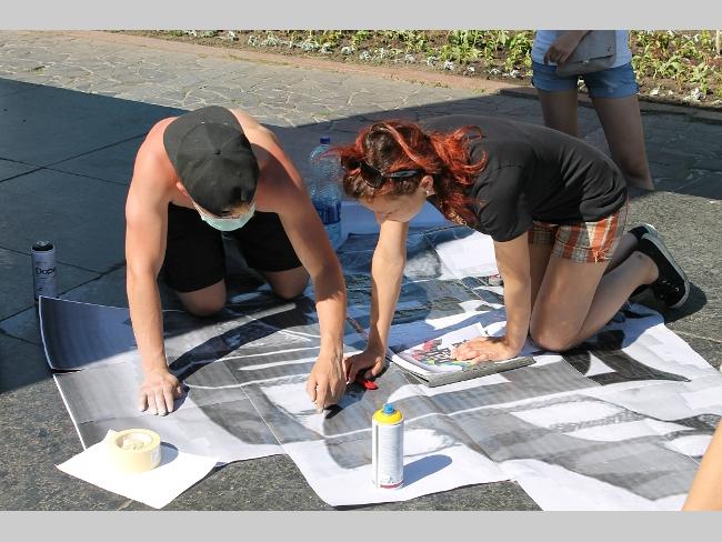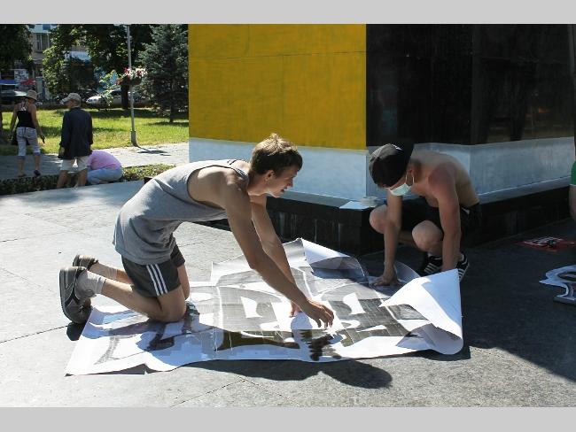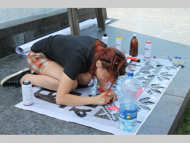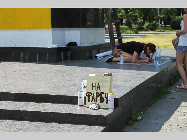 — Краски закупили уже более чем на 500 гривен. Используем специальную краску для граффити. Сначала делаем трафарет, а затем наносим рисунок на постамент. Начали работать в 10 часов утра, надеемся, что сегодня к вечеру закончим работу, — рассказали активисты.