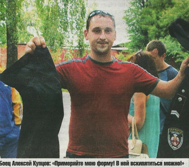 — Командир батальона сказал: «Завтра приходите в 9 утра. Перед вами раскладываем всю амуницию. Если чего-то не будет — ваше право», — присоединяется 30-летний Алексей Купцов из Чернигова, бывший милиционер, ВВшник (работал на Шевченко, 13, горотдел милиции), проходил службу в в/ч 3030, в последнее время был частным предпринимателем. — Мы пришли. Нам говорят, что должны выдвигаться в 14.00. Без предъявления бронежилетов. На построении замкомандира батальона Виталий на мой вопрос: «Где. наши бронежилеты?» ответил: «Они есть». Попросил показать — «Есть». «Сколько?». «Шестьдесят». Нас стояло 120 человек. «Зачем тебе бронежилет?»— спрашивает. «Мы едем в точку, где боевые действия», — отвечаю. «Ты что, в нем ср...ть будешь? Он будет нужен тебе тогда, когда будешь выдвигаться на блокпост». Как так? А если я буду в палатке, и нападут сепаратисты, что делать? Бежать к брату: «Снимай бронежилет, в меня стреляют?»