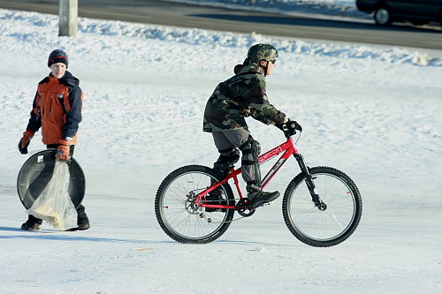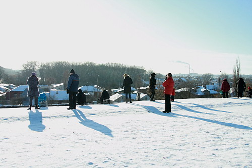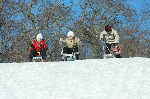 На санках в Чернигове можно покататься не только в Яловщине. Есть отличное место почти в центре города. Возле Екатерининской церкви. На эту горку, с тех пор, как выпал снег вот уже каждое утро сбегаются дети из прилегающих районов, чтоб вдоволь накататься. Некоторые под строгим присмотром родителей, а некоторые сами по себе. Спускаются кто на чем: санки, клеенки, специальные пластмассовые круги, просто на попе и даже на велосипеде. Детский смех и крики восторга звучат, пока не стемнеет. Взрослые с удовольствием катаются вместе с малышами. Плохо только то, что когда на огромной скорости дети мчаться с горки они не успев затормозить вылетают на проезжую часть.