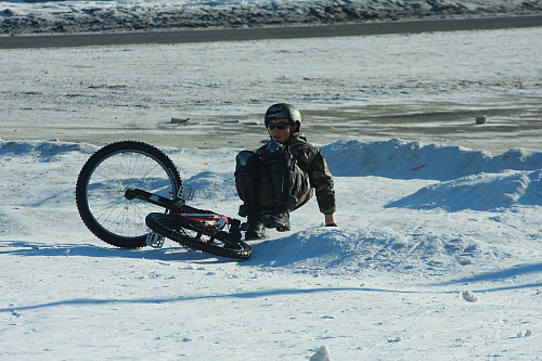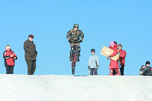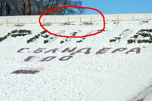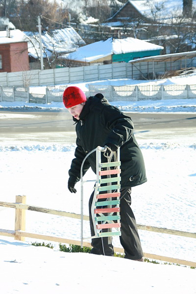 Неплохо было бы это место отгородить специальным бордюром, как отгородили тот участок, где летом высаживают цветы в виде надписи «Чернигов». В 20 метрах от горки стоят ГАИшники и штрафуют машины за нарушения, в то время, как настоящая драма в любой момент может разыграться за их спиной. Буквально при нас 12-летний Влад, ученик 3-й школы, вылетел на дорогу, чуть ли, не под колеса автомобиля. При таком гололеде даже самый внимательный водитель не успеет притормозить.