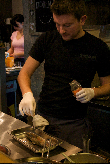 В Киеве открылся гастрономический бар "Барсук". Его главное отличие от других баров столицы - открытая кухня, которая позволяет видеть весь процесс приготовления заказанного Вами блюда. Новый тренд "посмотри,сделай сам,и сразу съешь" захватил Украину. “Барсук” небольшой “нью йоркский" бар сделанный в стиле “loft”, тобиш превращен в заброшенную фабрику или другое здание промышленного назначения. Здесь свисающие вниз ломпочки, industrial лампы-пропеллеры, серые полутона и весенние цветы на грубых железных столах. Попивая "лучший кофе в городе" ( гранулы, Illy), можно наблюдать за поварами, которые из-под ножа готовят для Вас из качественных сезонных продуктов на чем, собственно, и поставлен акцент заведения. Все вкусно, натурально и относительно недорого. Есть также школа кулинарии, которая каждый уикенд собирает всех желающих ознак ...