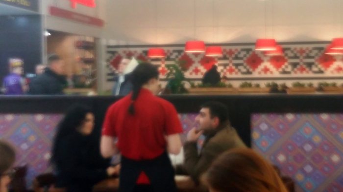 К 7 часам вечера Хинкальня была полна посетителей, к моему удивлению за те 30 минут, что я там была в ресторане, я увидела несколько грузинов обоих полов, или людей, которые очень похожи на эту национальность. Кто-то из них сидел за столиком с друзьями, кто-то подходил к официантам и расспрашивал что да как, была и романтическая пара.