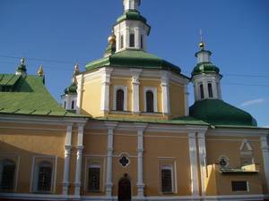 В 40 гг. 18 ст. территорию его была расширена на Юг.-Зп., в связи с чем сооружены две угловые башни, а в 1750 - дом архимандрита. Окончательно ансамбль сложился в 1775 г., когда с северной стороны выросла 58-метровая пяти-ярусна колокольня, которая придала всему комплексу динамичность и завершенность.