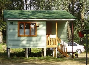 Пляж с рекой – 80 метров от самого дальнего домика. На территории есть душ – работает до 12.00. Сдают лодки напрокат. На территории есть зал для малого тенниса – открывается по требованию.