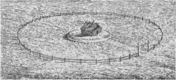 віднесена у бік, а над ним насипано насип заввишки 7 метрів. На вершині цього насипу, крім вийнятих з вогнища речей, поклали і деякі інші, зокрема великий залізний казан, наповнений баранячими та пташиними кістками, два залізні ножі для жертвоприношення та два ритони - турячих роги для ритуального питва. Саме вони і стали головною знахідкою Самоквасова.