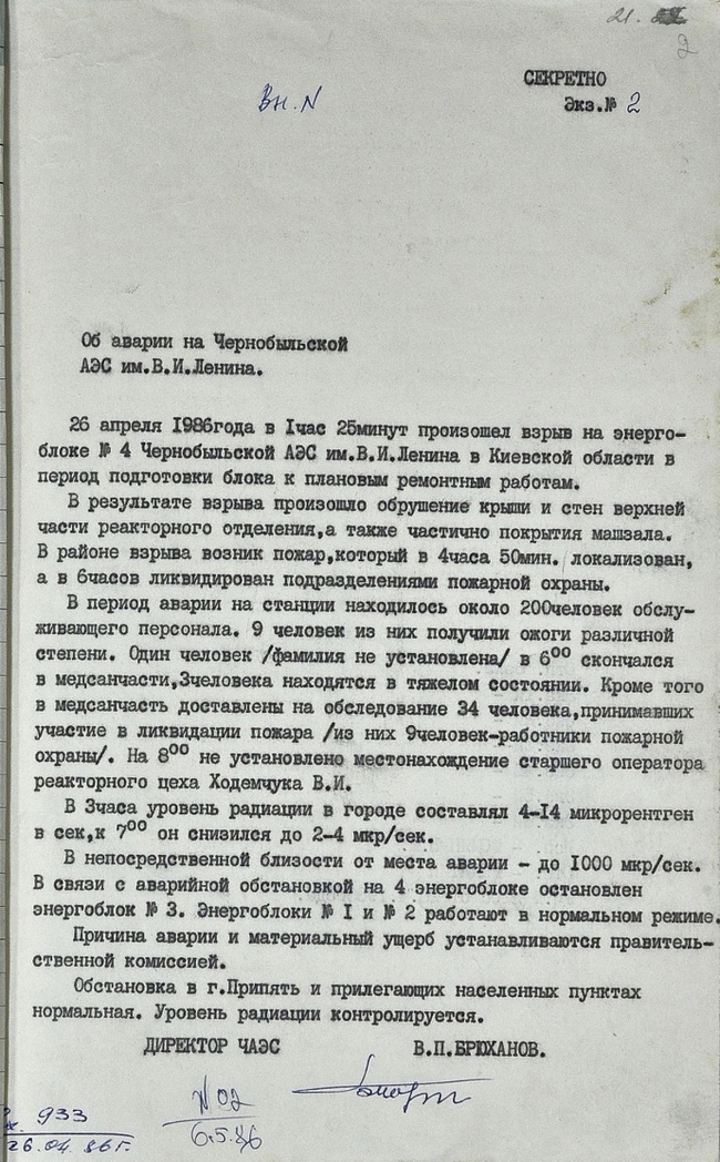 Деталі: До 35 роковин Чорнобильської трагедії Державний архів Служби безпеки України публікує секретні документи КДБ: найпершу доповідь "наверх" про вибух від директора ЧАЕС Віктора Брюханова, переговори операторів станції в момент аварії, евакуація майже 45 тис. жителів Прип’яті та прилеглих районів.