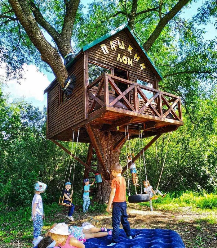 Дмитрий всегда мечтал о большой дружной семье - чтобы за большим столом могли собраться родители, дети и внуки. Мечта сбылась. Больше того, кроме дома в котором живет большая семья, он вместе со своими друзьями построил на одном из близрастущих крепких деревьев - «Пашкин домик» - подарок сыну ко дню рождения. В этом домике есть балкон с видом на пруд, а внутри - мягкая мебель, небольшой шкафчик и столик.