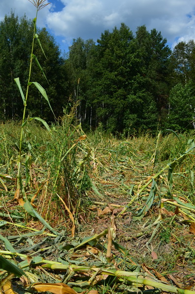 „Вони розпочали, напевно, із городу крайньої хати (Там мешкає 83-річна Любов Федорівна (Авт.) ще позавчора, – висловлює власне припущення Олександр Мурашко. Дикі свині його кукурудзу також спробували на зубок.