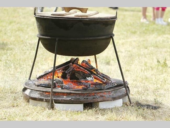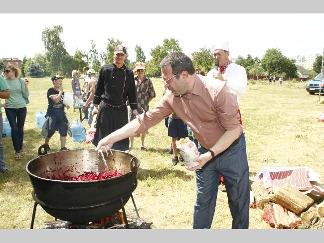 Что любопытно, готовить вкусности для горожан помогал лично Геннадий Корбан, помешивая на огне зажарку здоровенной дубовой кописткой – лопатой.