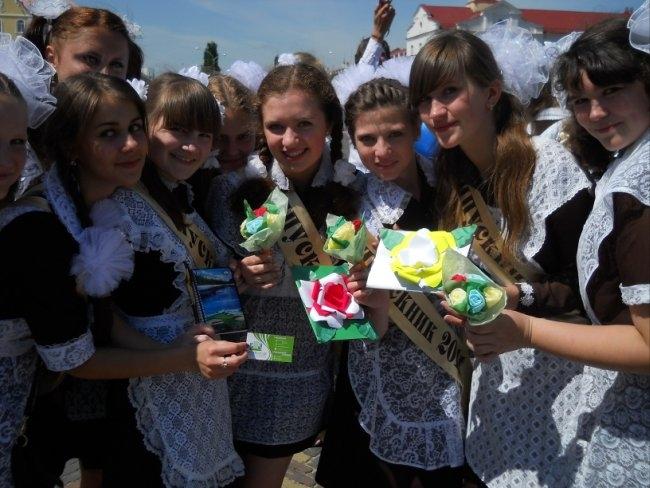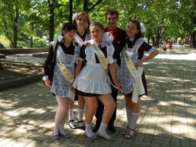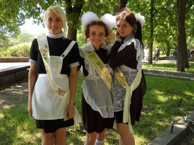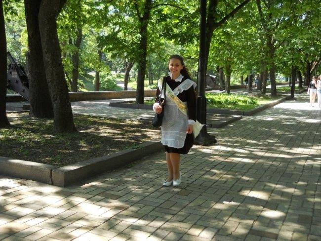 Виктория Стукало, 11-А, школа №7: Советскую школьную форму взяла в прокате. Заплатила 120 грн. Наш последний звонок прошел круто! Потом собрались в классе. Пришла первая учительница и мы прочитали письма, написанные нами в 1-м классе. Чуть не расплакалась. Первоклассники нам подарили самодельные цветочки, красивые открытки и конфеты. Последний звонок алкоголем не отмечали – не наш стиль. Мы сегодня трезвые, как стеклышки!
