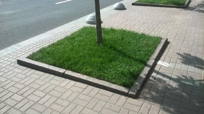 Или вот эта наша тема с кусками земли между дорогой и тротуаром. Это нахрена вообще? Что, строители дороги были озбочены её флористикой? Или насыщением кислородом бл ...