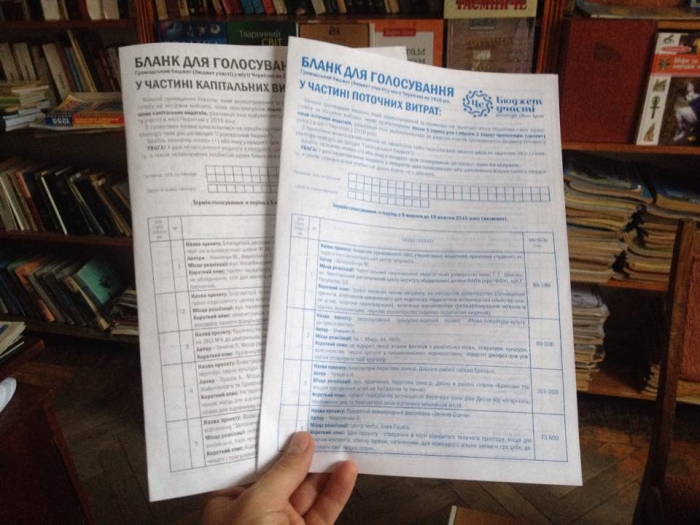 Кто не в курсе в Чернигове и Черкасах сейчас проходит эксперимент - "Бюджет участі". Если очень коротко, то это такая хрень, когда из городского бюджета будущего года выделяется примерно 1% (около 5 млн. грн. в нашем случае), и на эти деньги принимаются проекты от простых горожан. Потом идет отбор некой комиссией, потом голосование за отобранные проекты. И в итоге проекты, набравшие наибольшее количество голосов, должны быть включены в бюджет следующего года и, соответственно, профинансированы. Половина всей суммы распределяется между разноо рода инфраструктурными проектами, там, починить/покрасить/отремонтирвоать и т. д. А вторая половина идет на финансирование всяких прочих проектов, ивентов и т. п. Больше инфы здесь: //www.chernigiv-rada.gov.ua/budget/news