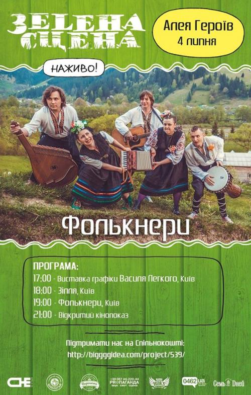 Завтра (а для кого-то уже сегодня) будет крутезная Зеленая Сцена. Традиционно в предверии праздника Ивана Купала мы делаем ее этнической, фолковой. Будут два коллектива, оба из Киева. Один совсем молодой «Зілля». Сами позвонили, предложили, посмотрим, что за этно-фрукты.