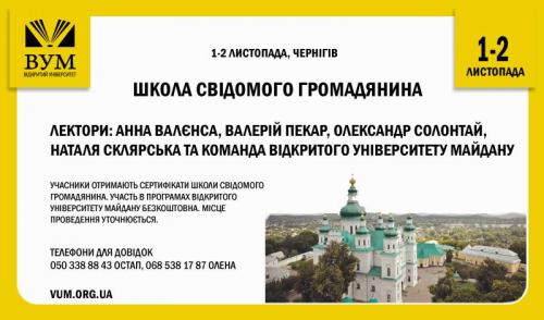 В суботу і неділю до Чернігова завітає Відкритий Університет Майдану зі своєю Школою Свідомого Громадянина Реєстрація за посиланням //goo.gl/forms/lwhEIh5yev